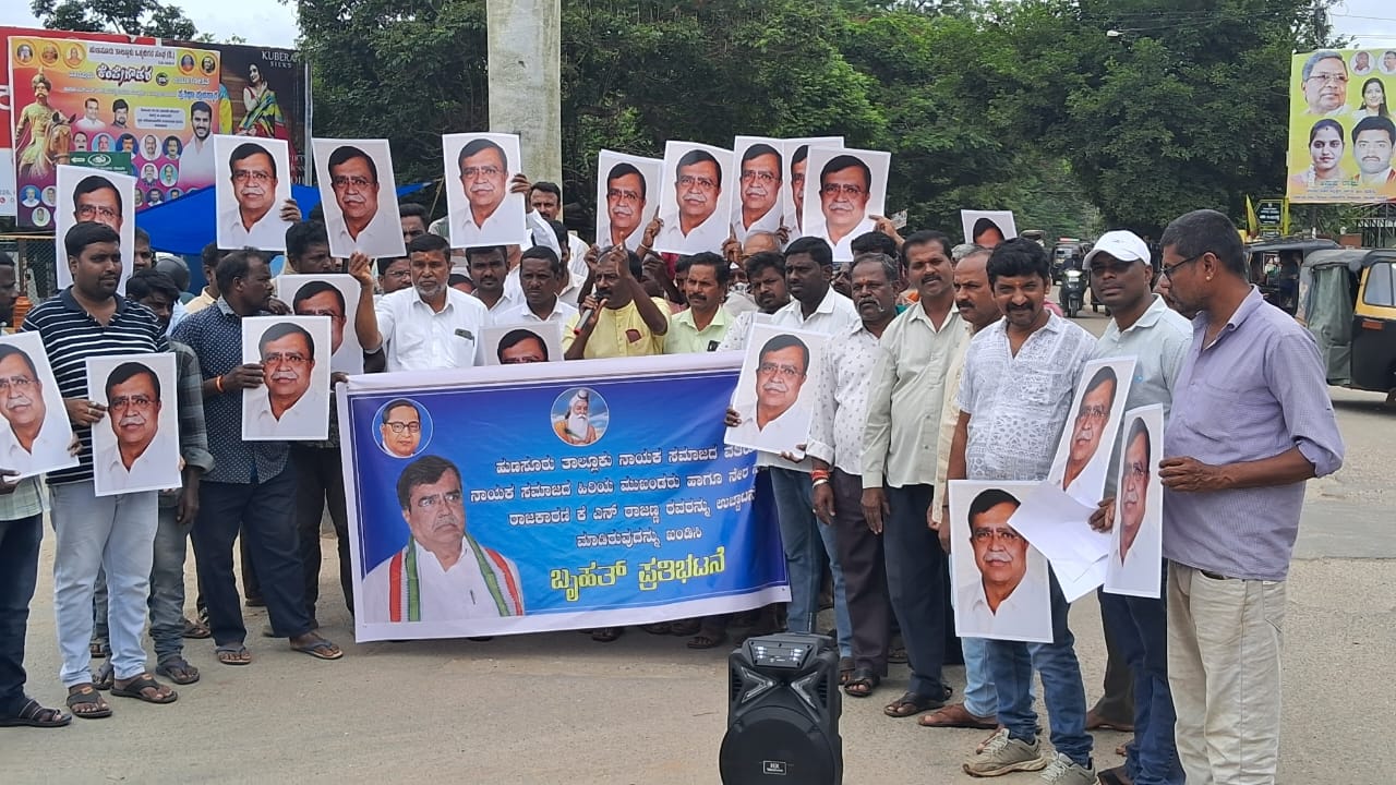 ಹುಣಸೂರಿನ ಸಂವಿಧಾನ ವೃತ್ತದಲ್ಲಿ ಹುಣಸೂರು ತಾಲೂಕು ನಾಯಕ ಸಮಾಜದ ನೇತೃತ್ವದಲ್ಲಿ ದಲಿತ ಸಂಘಟನೆ ಗಳು, ಕರ್ನಾಟಕ ಪ್ರಜಾ ಪಾರ್ಟಿ ರೈತ ಪರ್ವ ಸೇರಿದಂತೆ ಹಲವು ಸಂಘಟನೆಗಳವರು ಪ್ರತಿಭಟನೆ ನಡೆಸಿದರು.