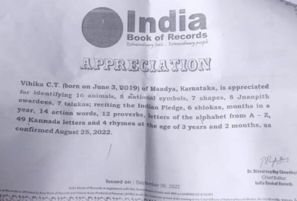 ಅಷ್ಟೇ ಅಲ್ಲಾ ಈ ಮಗು ಇನ್ನೂ 3 ವರ್ಷ ಇದ್ದಾಗಲೇ ಇಂಡಿಯಾ ಬುಕ್ ಆಫ್ ರೆಕಾರ್ಡ್ಸ್ ಮಾಡಿದ್ದಾಳೆ.