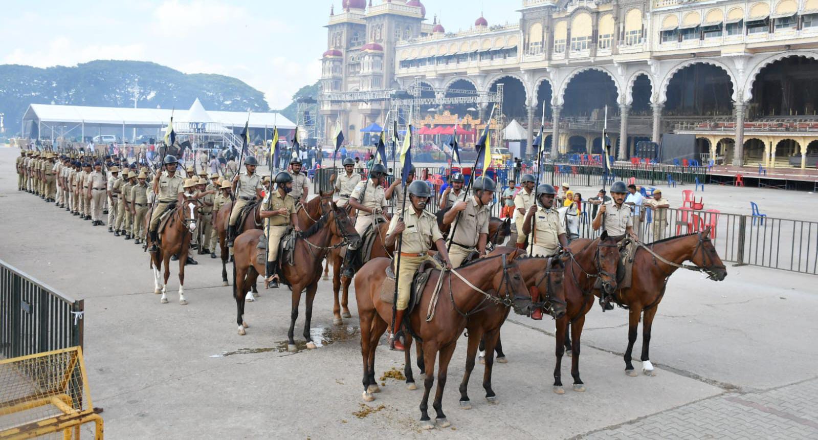 ಇಂದು ಬೆಳಗ್ಗೆ ಅರಮನೆ ಮುಂಭಾಗದಲ್ಲಿ ದಸರಾ ಜಂಬೂ ಸವಾರಿಯ ಪುಷ್ಪಾರ್ಚನೆಯ ತಾಲೀಮನ್ನು ಅರಣ್ಯ ಇಲಾಖೆ ಹಾಗೂ ಪೊಲೀಸ್ ಇಲಾಖೆ ಜಂಟಿಯಾಗಿ ನಡೆಸಿದವು.