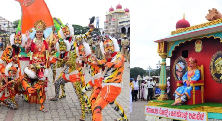 ಮೈಸೂರು: ವಿಶ್ವ ವಿಖ್ಯಾತ ದಸರಾ ಮಹೋತ್ಸವದ ಜಂಬೂಸವಾರಿ ಮೆರವಣಿಗೆಯಲ್ಲಿ ಸಾಗಿಬಂದ ಸ್ತಬ್ಧಚಿತ್ರಗಳು,ಜಾನಪದ ಕಲಾತಂಡಗಳು ಈ ಬಾರಿ ಅತಿ ಹೆಚ್ಚು ಆಕರ್ಶಣೆಯಿಂದ ಕೂಡಿದ್ದವು.