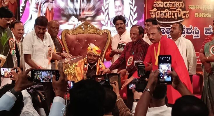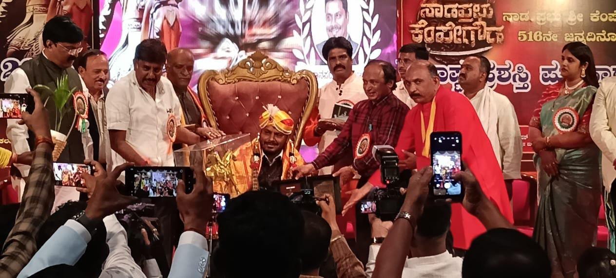 ಬೆಂಗಳೂರು: ನಾಡಪ್ರಭು ಕೆಂಪೇಗೌಡ ರಾಷ್ಟ್ರೀಯ ಪ್ರಶಸ್ತಿಯನ್ನು ಕನ್ನಡ ಜಾನಪದ ಪರಿಷತ್ ರಾಜ್ಯಾಧ್ಯಕ್ಷ ಭಾರತ ಸರ್ಕಾರದ ಐಸಿಸಿ ಆರ್ ಸದಸ್ಯ ಡಾ ಜಾನಪದ ಎಸ್ ಬಾಲಾಜಿ ಅವರಿಗೆ ನೀಡಿಗೌರವಿಸಲಾಯಿತು.