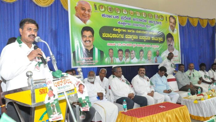 ಪಟ್ಟಣದ ವೆಂಕಟೇಶ್ವರ ಮಹಲ್ ನಲ್ಲಿ ನಡೆದ ಕರ್ನಾಟಕ ಪ್ರದೇಶ ಜನತಾದಳ (ಜಾತ್ಯತೀತ)ದ ಕೊಳ್ಳೇಗಾಲ ವಿಧಾನಸಭಾ ಕ್ಷೇತ್ರದ ಕೊಳ್ಳೇಗಾಲ ಹಾಗೂ ಯಳಂದೂರು ತಾಲ್ಲೂಕಿನ ಪದಾಧಿಕಾರಿಗಳ ಪದಗ್ರಹಣ ಕಾರ್ಯಕ್ರಮ ಉದ್ಘಾಟಿಸಿ ಮಾತನಾಡಿದರು.