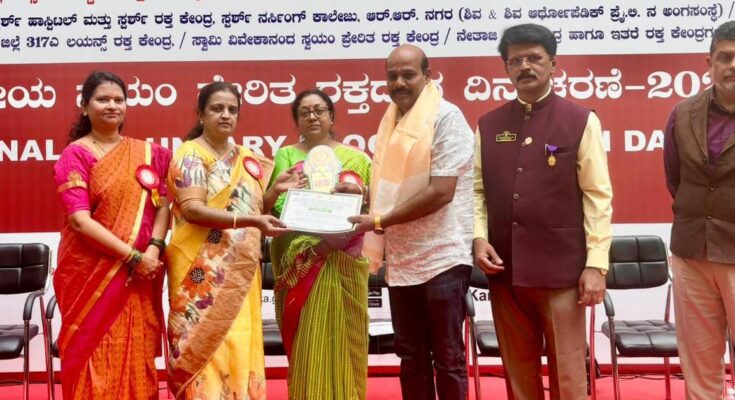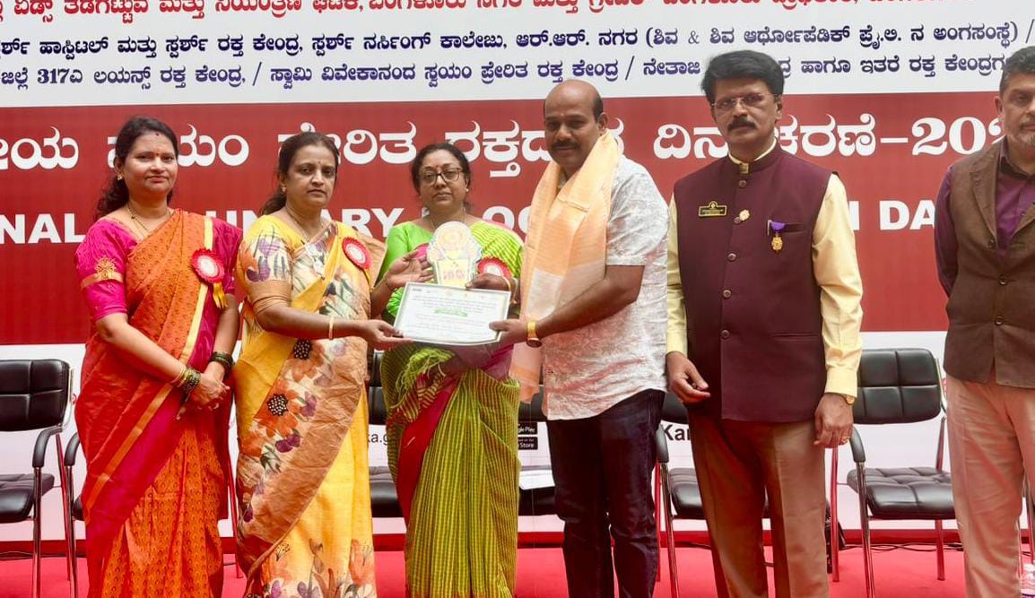 ಬೆಂಗಳೂರು ಜಿಲ್ಲಾಡಳಿತ, ಜಿಲ್ಲಾ ಪಂಚಾಯತ್, ಬೆಂಗಳೂರು ಜಿಲ್ಲಾ ಆರೋಗ್ಯ ಮತ್ತು ಕುಟುಂಬ ಕಲ್ಯಾಣ ಇಲಾಖೆ,ಬೆಂಗಳೂರು ನಗರ ಜಿಲ್ಲಾ ಕರ್ನಾಟಕ ರಾಜ್ಯ ರಕ್ತ ಸಂಚಲನಾ ಪರಿಷತ್ ಬೆಂಗಳೂರು, ಜಿಲ್ಲಾ ಏಡ್ಸ್ ತಡೆಗಟ್ಟುವ ಮತ್ತು ನಿಯಂತ್ರಣ ಘಟಕ,ಬೆಂಗಳೂರು ನಗರ ಮತ್ತು ಗ್ರೇಟರ್ ಬೆಂಗಳೂರು ಪ್ರಾಧಿಕಾರ ವತಿಯಿಂದ ರಾಷ್ಟ್ರೀಯ ಸ್ವಯಂ ಪ್ರೇರಿತ ರಕ್ತದಾನ ದಿನಾಚರಣೆ ಅಂಗವಾಗಿ ಬೆಂಗಳೂರಿನ ರಾಜರಾಜೇಶ್ವರಿ ನಗರದಲ್ಲಿರುವ ಸ್ಪರ್ಶ ಆಸ್ಪತ್ರೆಯಲ್ಲಿ ನಡೆದ ಕಾರ್ಯಕ್ರಮದಲ್ಲಿ ಅತ್ಯುತ್ತಮ