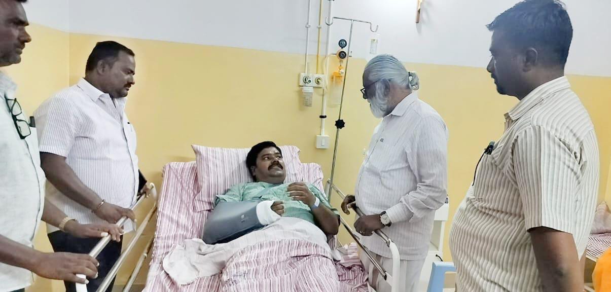 ಇದರಿಂದ ಕುಪಿತನಾದ ಆತ ಇದನ್ನು ಕೇಳಲು ನೀನು ಯಾರು ಎಂದು ಹಲ್ಲೆಗೆ ಮುಂದಾಗಿ ಅವರ ಕೈ ಹಿಡಿದು ಬಲವಾಗಿ ತಿರುವಿದ್ದಾನೆ.