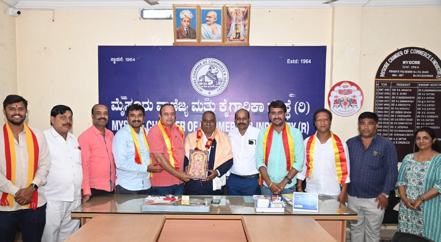 ಮೈಸೂರು ಜಿಲ್ಲಾಡಳಿತ ವತಿಯಿಂದ 70ನೇ ಕನ್ನಡ ರಾಜ್ಯೋತ್ಸವ ಆಚರಿಸಿದ ಸಂದರ್ಭದಲ್ಲಿ ಸಮಾಜ ಸೇವೆಯಿಂದ ಮೈಸೂರು ವಾಣಿಜ್ಯ ಮತ್ತು ಕೈಗಾರಿಕಾ ಸಂಸ್ಥೆಯ ಅಧ್ಯಕ್ಷರಾದ ಕೆ ಬಿ ಲಿಂಗರಾಜು ಅವರು ಜಿಲ್ಲಾ ರಾಜ್ಯೋತ್ಸವ ಪ್ರಶಸ್ತಿ ಪಡೆದುದಕ್ಕಾಗಿ ಕೆಎಂಪಿಕೆ ಚಾರಿಟಬಲ್ ಟ್ರಸ್ಟ್ ಹಾಗೂ ಕರ್ನಾಟಕ ಹಿತರಕ್ಷಣಾ ವೇದಿಕೆ ವತಿಯಿಂದ ಅಭಿನಂದನೆ ಸಲ್ಲಿಸಿದ ವೇಳೆ