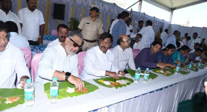 ಮೈಸೂರು: ದಸರಾ ಅಂಗವಾಗಿ ಮಾವುತರು,ಕಾವಾಡಿಗಳಿಗೆ ಜಿಲ್ಲಾಡಳಿತ ಅರಮನೆ ಆವರಣದಲ್ಲಿ ಏರ್ಪಡಿಸಿದ್ದ ಉಪಹಾರದ ವೇಳೆ ಸಚಿವ ಡಾ ಹೆಚ್.ಸಿ.ಮಹದೇವಪ್ಪ ಉಪಹಾರ ಬಡಿಸಿ ಕುಶಲೋಪರಿ ವಿಚಾರಿಸಿದರು.