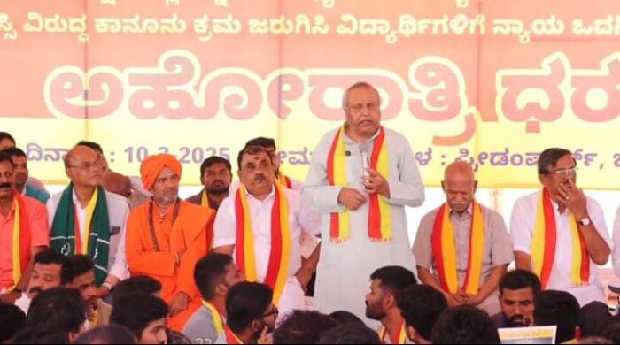 ಆಗ್ರಹಿಸಿ ನಗರದ ಸ್ವಾತಂತ್ರ್ಯ ಉದ್ಯಾನವನದಲ್ಲಿ ಟಿ.ಎ.ನಾರಾಯಣಗೌಡ ಬಣದ ಕರ್ನಾಟಕ ರಕ್ಷಣಾ ವೇದಿಕೆ ಆಯೋಜಿಸಿದ್ದ ಪ್ರತಿಭಟನೆಯಲ್ಲಿ ಭಾಗವಹಿಸಿ ಅವರು ಮಾತನಾಡಿದರು.