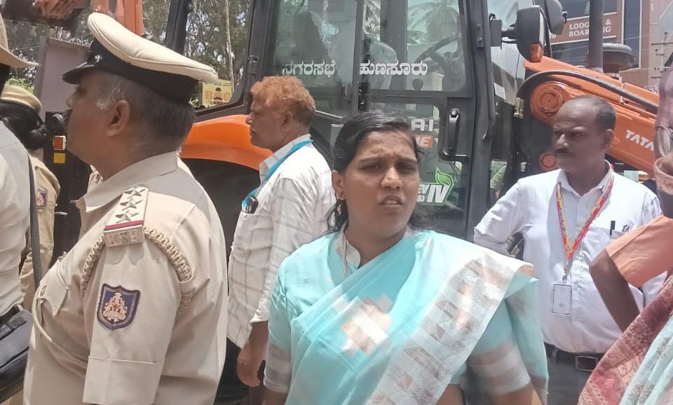 ಜೆಸಿಬಿ ಸದ್ದು ಮಾಡುವಷ್ಟರಲ್ಲಿ ಜನರ ವಿರೋಧ ಮತ್ತು ಕರ್ನಾಟಕ ಪ್ರಜಾ ಪಾರ್ಟಿಯವರ ವಿರೋಧದಿಂದ ಸದ್ಯಕ್ಕೆ ಹುಣಸೂರು ನಗರಸಭೆ ಅಧಿಕಾರಿಗಳು ಒಂದು ತಿಂಗಳು ಕಾಲಾವಕಾಶ ನೀಡಿ ಕಟ್ಟಡ ಒಡೆಯುವುದರಿಂದ ಹಿಂದೆ ಸರಿದಿದ್ದಾರೆ.