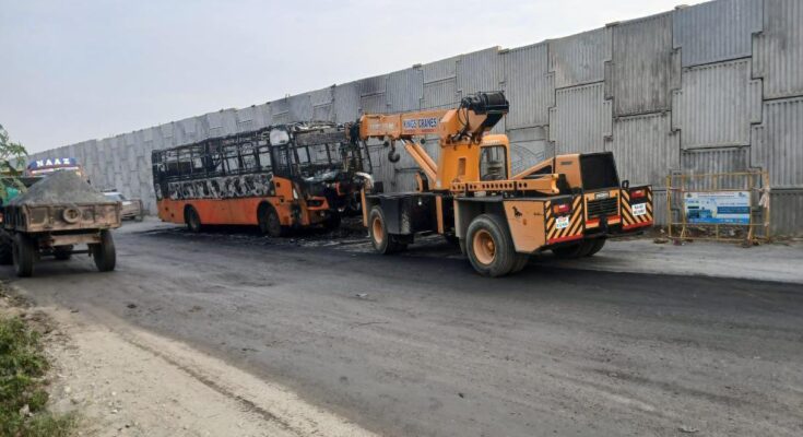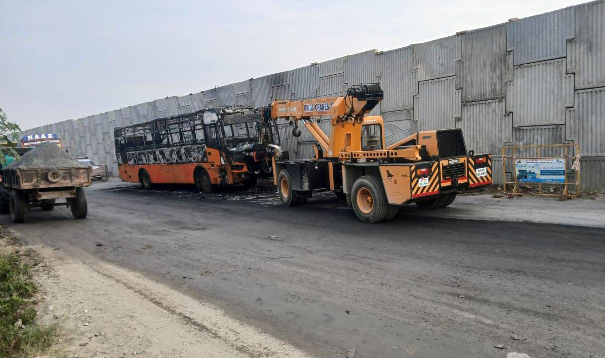 ಕೇರಳಾ ರಾಜ್ಯಕ್ಕೆ ಸೇರಿದ ಬಸ್ ಸುಟ್ಟು ಹೋಗಿದ್ದು ಪ್ರಯಾಣಿಕರಿಗೆ ಪರ್ಯಾಯ ಬಸ್ ವ್ಯವಸ್ಥೆ ಮಾಡಲಾಗಿದೆ.