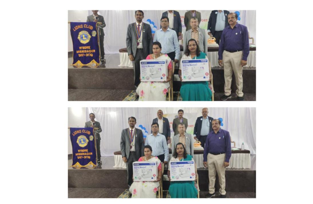 ಮೈಸೂರು: ಲಯನ್ಸ್ ಅಂಬಾಸಿಡರ್ ಸಂಸ್ಥೆ ವತಿಯಿಂದ ಮಹಿಳಾ ಆರ್ಥಿಕ ಸಬಲೀಕರಣ ಸೇವಾ ಕಾರ್ಯಕ್ರಮದ ಅಡಿಯಲ್ಲಿ ನಾಲ್ಕು ಹೊಲಿಗೆ ಯಂತ್ರಗಳನ್ನು ವಿತರಿಸಲಾಯಿತು.