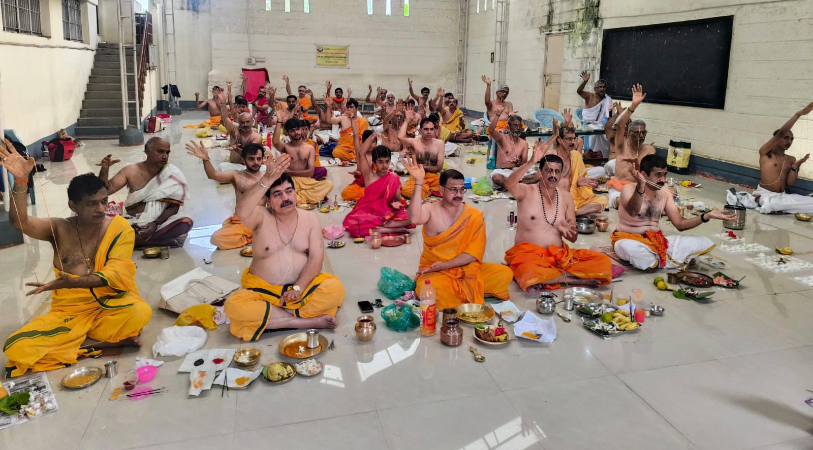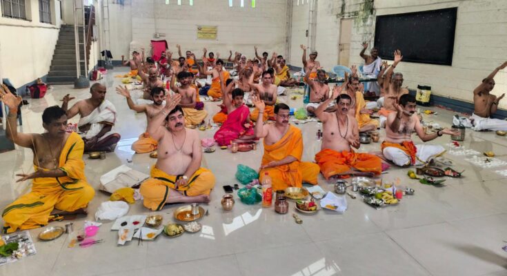 ಮೈಸೂರು: ಶ್ರೀರಾಮಚಂದ್ರಾಪುರ ಮಠದ ಹವ್ಯಕ ಮಹಾಮಂಡಲದ ಮೈಸೂರು ವಲಯದ ವತಿಯಿಂದ ಬೋಗಾದಿ, ಸಾಯಿ ಸರಸ್ವತಿ ವಿದ್ಯಾಕೇಂದ್ರದ ಆವರಣದಲ್ಲಿ ತ್ರಿಮತಸ್ಥ ಬ್ರಾಹ್ಮಣರಿಗೆ ಸಾಮೂಹಿಕ ಯಜುರುಪಾಕರ್ಮ ಆಯೋಜಿಸಲಾಗಿತ್ತು.