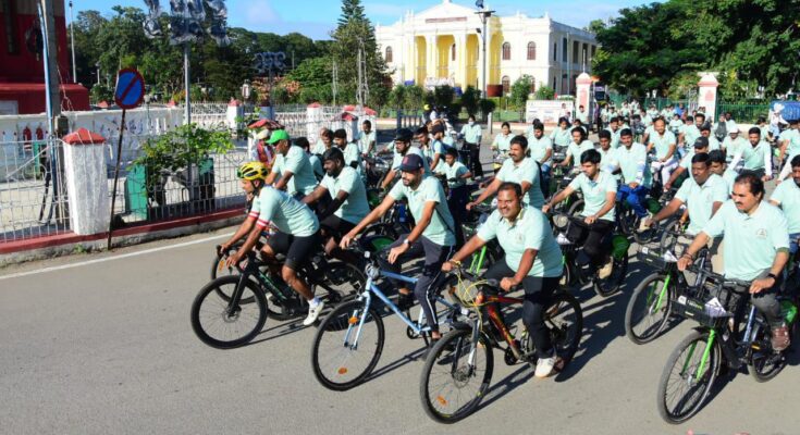 ಕಾರ್ಯಕ್ರಮದಲ್ಲಿ ಮುಖ್ಯ ಅತಿಥಿಯಾಗಿ ಭಾಗಿಯಾಗಿದ್ದ ಸೈಕಲಿಸ್ಟ್ ನವೀನ್ ಡಿ.ಎನ್ ಸೋಲಂಕಿ ಅವರು, ಸೈಕಲ್ ಸವಾರಿಗೆ ಚಾಲನೆ ಕೊಟ್ಟರು.