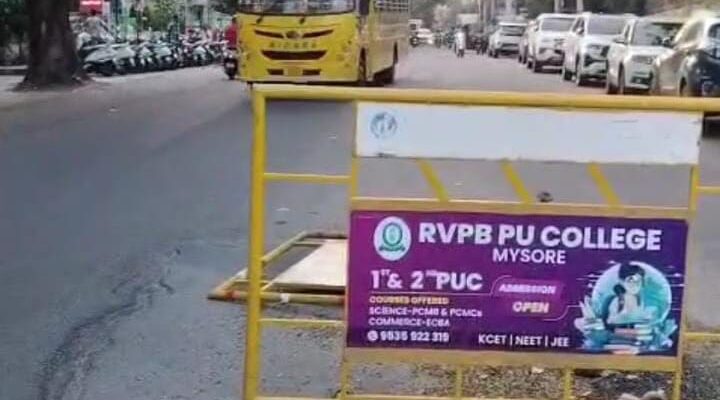 ಮೈಸೂರು: ಮೈಸೂರಿನ ಪ್ರತಿಷ್ಠಿತ ಕಾಳಿದಾಸ ರಸ್ತೆ ಮಧ್ಯಭಾಗದಲ್ಲಿ ಮ್ಯಾನ್ ಹೋಲ್ ಕುಸಿದು ಜನರಿಗೆ,ವಾಹನ ಸವಾರರಿಗೆ ತೀವ್ರ ತೊಂದರೆಯಾಗಿದೆ.