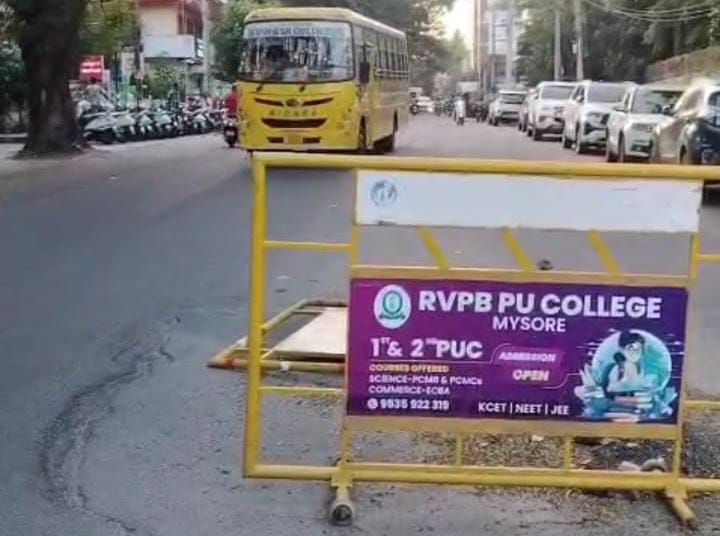 ಮೈಸೂರು: ಮೈಸೂರಿನ ಪ್ರತಿಷ್ಠಿತ ಕಾಳಿದಾಸ ರಸ್ತೆ ಮಧ್ಯಭಾಗದಲ್ಲಿ ಮ್ಯಾನ್ ಹೋಲ್ ಕುಸಿದು ಜನರಿಗೆ,ವಾಹನ ಸವಾರರಿಗೆ ತೀವ್ರ ತೊಂದರೆಯಾಗಿದೆ.