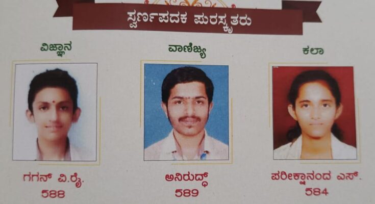 ಇದೆ ವೇಳೆ ಪಿಯುಸಿಯಲ್ಲಿ ವಿಜ್ಞಾನ ವಿಷಯದಲ್ಲಿ ಅತಿಹೆಚ್ಚು ಅಂಕ ಪಡೆದ ಗಗನ್ ವಿ.ರೈ(588), ವಾಣಿಜ್ಯ ವಿಭಾಗದಲ್ಲಿ ಅನಿರುದ್ಧ್ (589) ಮತ್ತು ಕಲಾ ವಿಭಾಗದಲ್ಲಿ ಪರೀಕ್ಷಾನಂದ ಎಸ್(584) ಇವರುಗಳಿಗೆ ಸ್ವರ್ಣ ಪದಕ ನೀಡಿ ಗೌರವಿಸಲಾಗುತ್ತದೆ.