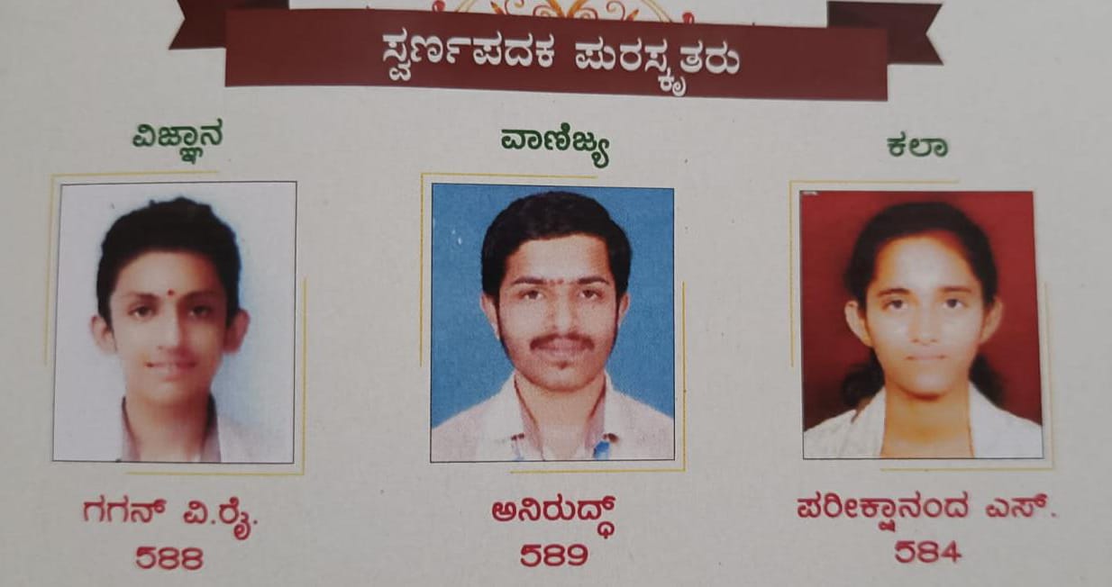 ಇದೆ ವೇಳೆ ಪಿಯುಸಿಯಲ್ಲಿ ವಿಜ್ಞಾನ ವಿಷಯದಲ್ಲಿ ಅತಿಹೆಚ್ಚು ಅಂಕ ಪಡೆದ ಗಗನ್ ವಿ.ರೈ(588), ವಾಣಿಜ್ಯ ವಿಭಾಗದಲ್ಲಿ ಅನಿರುದ್ಧ್ (589) ಮತ್ತು ಕಲಾ ವಿಭಾಗದಲ್ಲಿ ಪರೀಕ್ಷಾನಂದ ಎಸ್(584) ಇವರುಗಳಿಗೆ ಸ್ವರ್ಣ ಪದಕ ನೀಡಿ ಗೌರವಿಸಲಾಗುತ್ತದೆ.