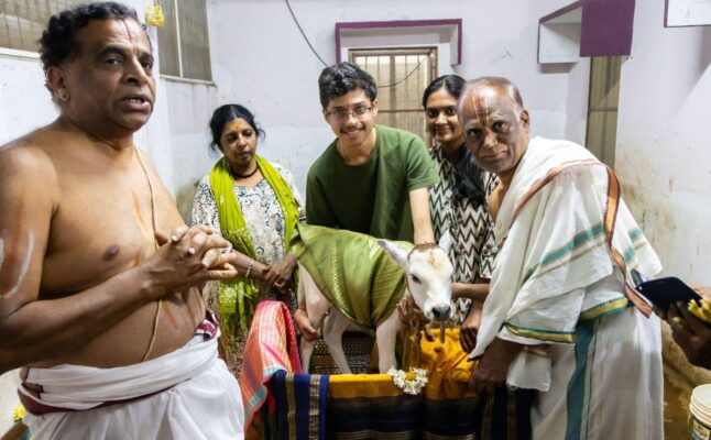 ಮೈಸೂರು: ಸಾಂಸ್ಕೃತಿಕ ನಗರಿ ಎಂಬ ಹೆಸರಿಗೆ ತಕ್ಕಂತೆ ಮೈಸೂರಿನ ಕುಟುಂಬವೊಂದು ಪುಂಗನೂರು ಎಂಬ ದೇಸಿ ಹಸುಗಳನ್ನು ಸಾಂಪ್ರದಾಯಿಕವಾಗಿ