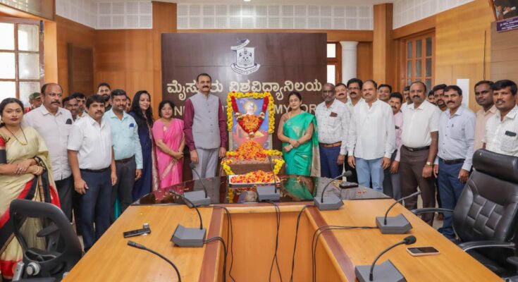 ಮೈಸೂರು ವಿಶ್ವವಿದ್ಯಾ ನಿಲಯದ ವತಿಯಿಂದ ಹಮ್ಮಿಕೊಂಡಿದ್ದ ಮಹರ್ಷಿ ವಾಲ್ಮೀಕಿ ಜಯಂತಿ ಕಾರ್ಯಕ್ರಮದಲ್ಲಿ ಪ್ರೊ. ಎನ್. ಕೆ. ಲೋಕನಾಥ್ ಅವರು ಪುಷ್ಪಾರ್ಚನೆ ಮಾಡಿ ಮಾತನಾಡಿದರು.