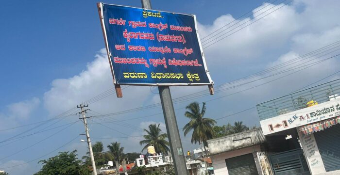ಇಂತಹ ಸಂದೇಶವಿರುವ ಫ್ಲೆಕ್ಸ್ ಗಳು ಮುಖ್ಯಮಂತ್ರಿ ಸಿದ್ದರಾಮಯ್ಯ ಪ್ರತಿನಿಧಿಸಿದ ವರುಣಾ ವಿಧಾನಸಭಾ ಕ್ಷೇತ್ರದ ನಗರ್ಲೆ ಗ್ರಾಮದಲ್ಲಿ ಎಲ್ಲೆಡೆ ಹಾರಾಡುತ್ತಿವೆ.