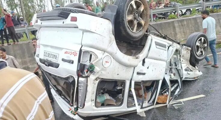 ಮಂಡ್ಯ ಜಿಲ್ಲೆ ಶ್ರೀರಂಗಪಟ್ಟಣ ತಾಲೂಕು ವ್ಯಾಪ್ತಿಯ ಗೌಡಹಳ್ಳಿ ಟಿಎಂ ಹೊಸೂರು ಬಳಿ ಎಕ್ಸ್ಪ್ರೆಸ್ವೇನಲ್ಲಿ ಈ ಘಟನೆ ನಡೆದಿದ್ದು,ಬೆಂಗಾವಲು ವಾಹನದಲ್ಲಿದ್ದ ಇಬ್ಬರು ಸಿಬ್ಬಂದಿಗೆ ಸಣ್ಣಪುಟ್ಟ ಗಾಯಗಳಾಗಿದ್ದು, ಪ್ರಾಣಾಪಾಯದಿಂದ ಪಾರಾಗಿದ್ದಾರೆ.
