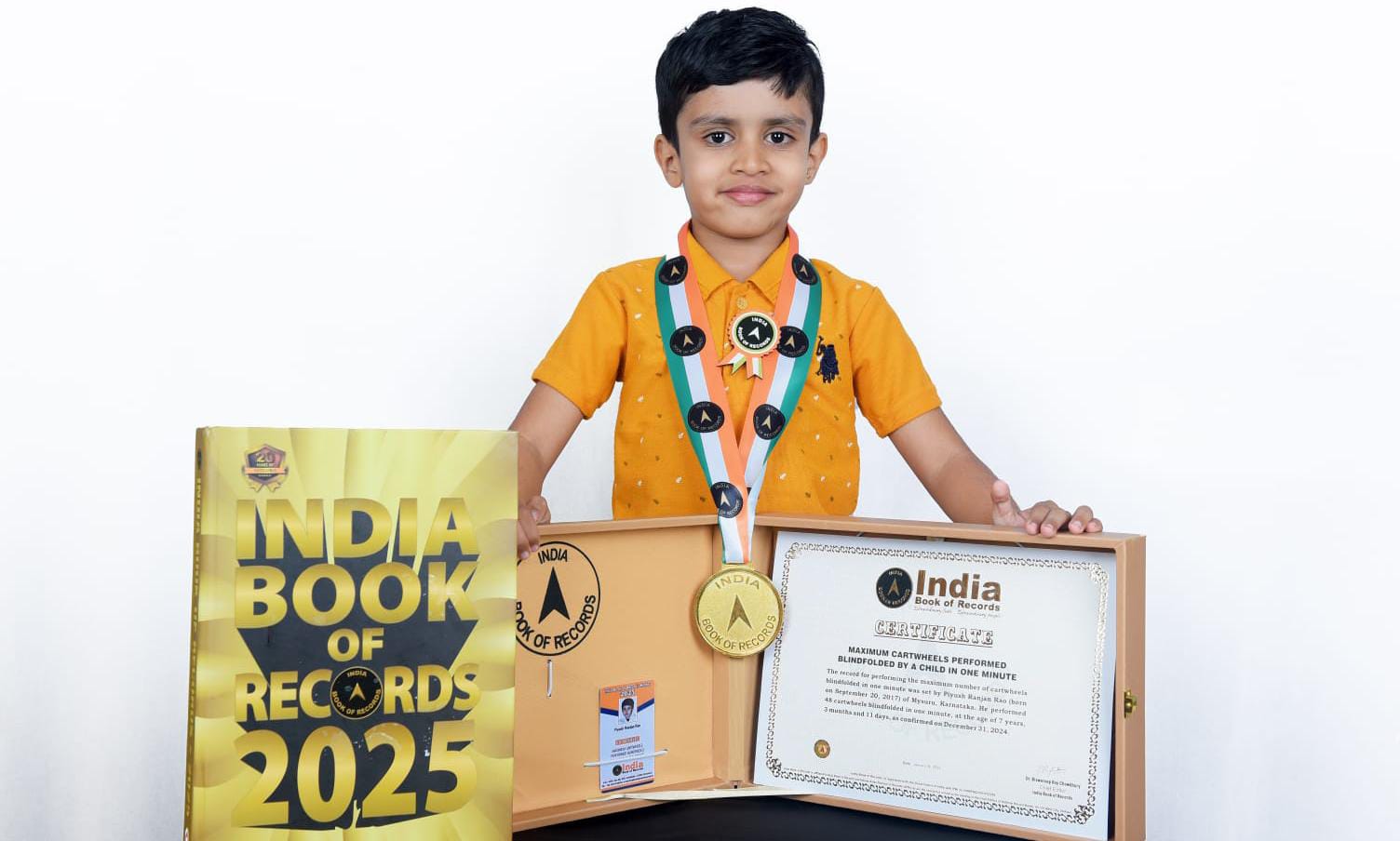 ಕರ್ನಾಟಕದ ಮೈಸೂರಿನ ಪಿಯೂಷ್ ರಂಜನ್ ರಾವ್ ಸೆಪ್ಟೆಂಬರ್ 20, 2017 ರಂದು ಜನಿಸಿದ್ದಾರೆ.ಅವರು ದಾಖಲೆ ಮಾಡುವಾಗ (ಡಿಸೆಂಬರ್ 31, 2024) 7 ವರ್ಷ, 3 ತಿಂಗಳು ಮತ್ತು 11 ದಿನಗಳು. ಒಂದು ನಿಮಿಷದಲ್ಲಿ ಕಣ್ಣುಮುಚ್ಚಿ 48 ಕಾರ್ಟ್‌ವೀಲ್‌ಗಳನ್ನು ಪ್ರದರ್ಶಿಸಿ ಇಂಡಿಯಾ ಬುಕ್ ಆಫ್ ರೆಕಾರ್ಡ್ ಮುಡಿಗೇರಿಸಿಕೊಂಡಿದ್ದಾರೆ.