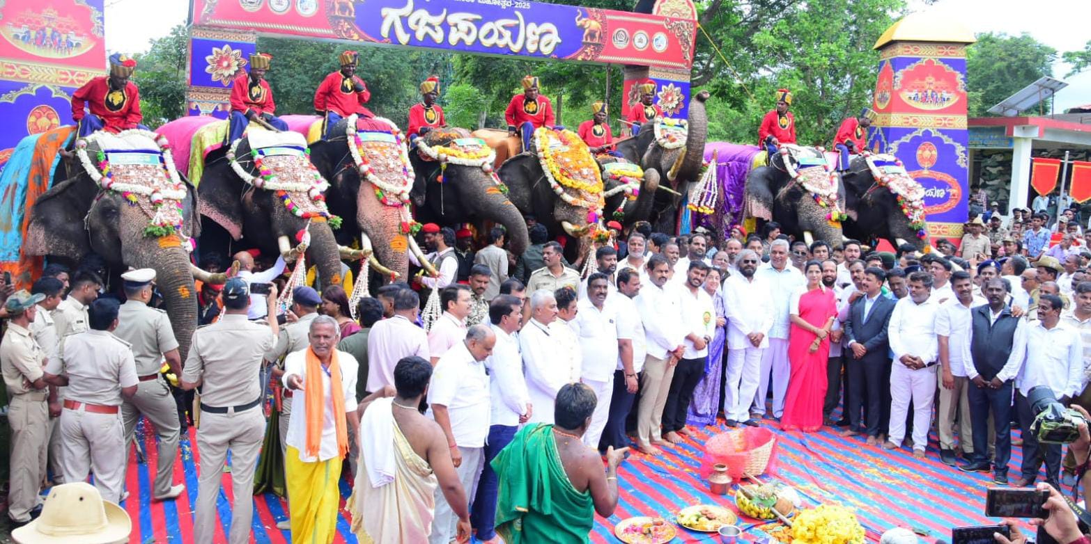 ವೀರನಹೊಸಳ್ಳಿ ಗ್ರಾಮದ ಬಳಿ ಮಧ್ಯಾಹ್ನ 12.34ರಿಂದ 12.59ರ ತುಲಾ ಲಗ್ನದಲ್ಲಿ ಗಜಪಡೆಗೆ ಪುಷ್ಪಾರ್ಚನೆ ಮಾಡುವ ಮೂಲಕ ಗಜಪಯಣ ಆರಂಭವಾಯುತು.
