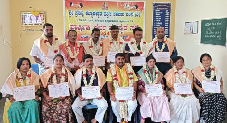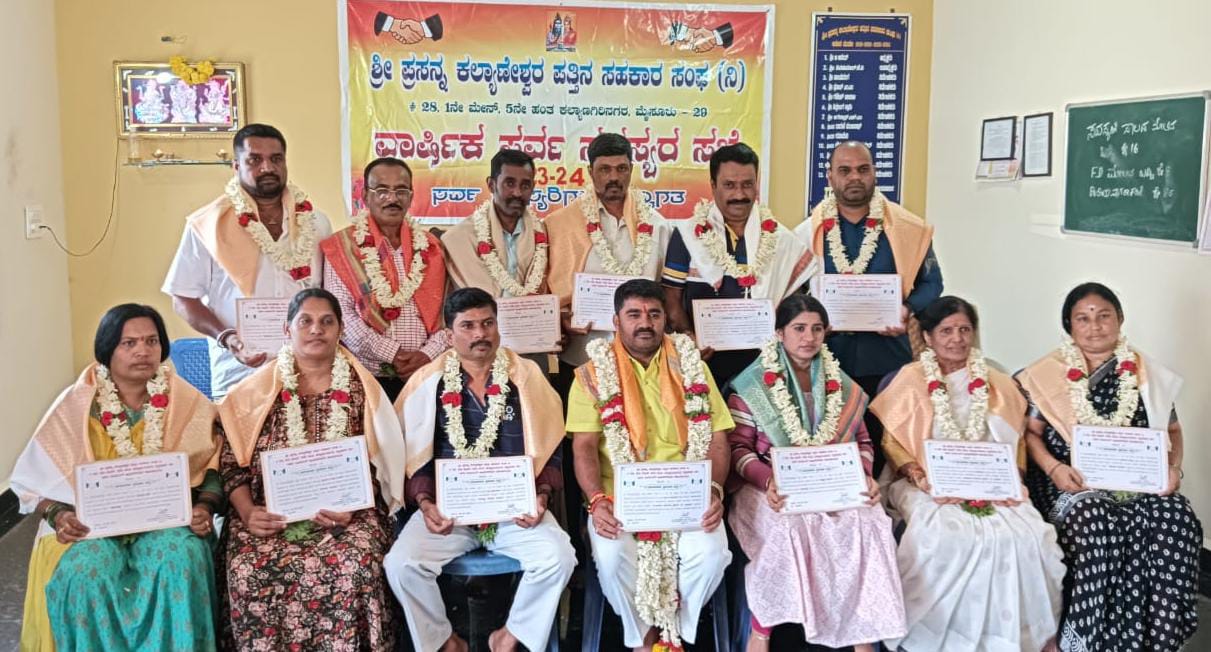 ಮೈಸೂರು: ಶ್ರೀ ಪ್ರಸನ್ನ ಕಲ್ಯಾಣೇಶ್ವರ ಪತ್ತಿನ ಸಹಕಾರ ಸಂಘದ ಆಡಳಿತ ಮಂಡಳಿಗೆ ಆಯ್ಕೆಯಾದ ಅಧ್ಯಕ್ಷ, ಉಪಾಧ್ಯಕ್ಷರನ್ನು ಸಂಘದ ವತಿಯಿಂದ ಅಭಿನಂದಿಸಲಾಯಿತು.