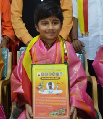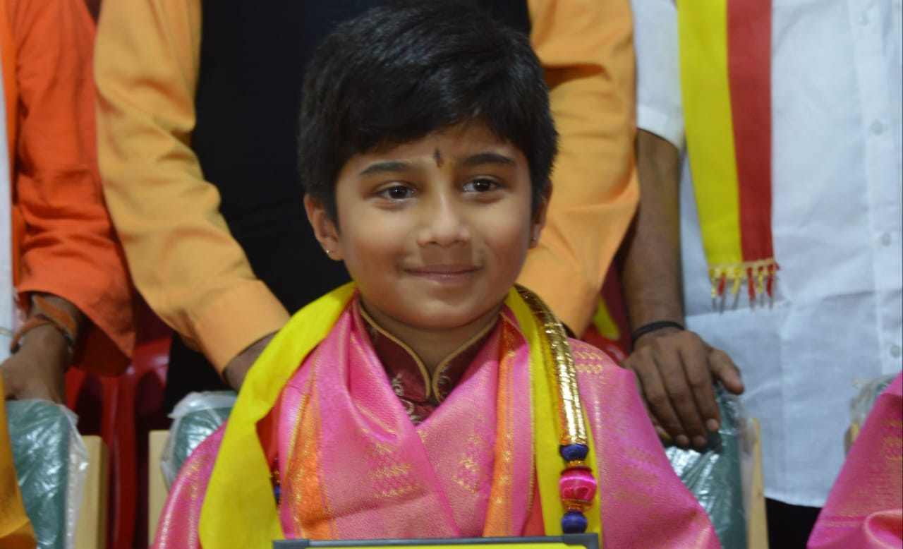 ಪೃಥು ಪಿ ಅದ್ವೈತ್ ಇತ್ತೀಚೆಗೆ 150 ಶ್ಲೋಕಗಳನ್ನು 30 ನಿಮಿಷದಲ್ಲಿ ಪಠಿಸಿ ಏಕಕಾಲದಲ್ಲಿ ಮೂರು ವಿಶ್ವ ದಾಖಲೆ ನಿರ್ಮಿಸಿದ್ದರು ಅವರ ಸಾಧನೆ ಗುರುತಿಸಿ ಈ ಪ್ರಶಸ್ತಿಯನ್ನು ನೀಡಲಾಗಿದೆ.