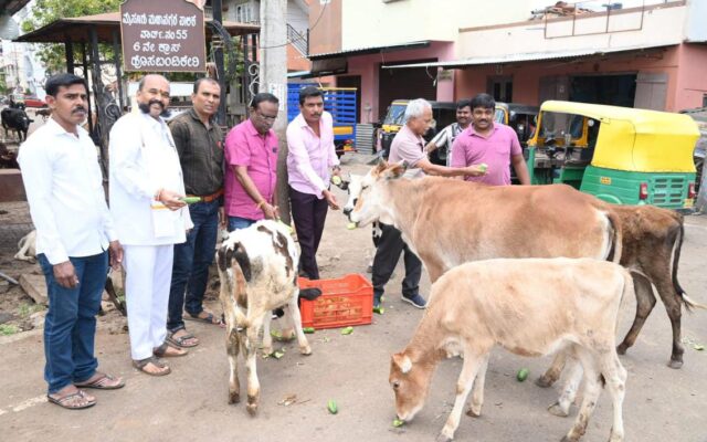 ಮೈಸೂರಿನ ನಂಜುಮಳಿಗೆ ಸಮೀಪ ಇರುವ ಶ್ರೀ ವೇಣುಗೋಪಾಲ ಕೃಷ್ಣ ಸ್ವಾಮಿ ದೇವಸ್ಥಾನ ಮುಂಭಾಗ ಅಪೂರ್ವ ಸ್ನೇಹ ಬಳಗದ ವತಿಯಿಂದ ಗೋ ಪೂಜೆ ನೆರವೇರಿಸಿ ಗೋವುಗಳಿಗೆ ಮೇವು ವಿತರಿಸಲಾಯಿತು.