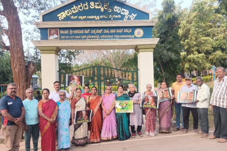 ಮೈಸೂರು: ಮೈಸೂರಿನ ರಾಮಕೃಷ್ಣನಗರದ ‘ಹೆಚ್’ ಬ್ಲಾಕ್ ನ ಸಾಲುಮರದ ತಿಮ್ಮಕ್ಕ ಉದ್ಯಾನವನದಲ್ಲಿ ಶ್ರೀ ರಾಮಕೃಷ್ಣ ಪರಮಹಂಸ ಪ್ರತಿಷ್ಠಾನದ ವತಿಯಿಂದ ಸಾಲುಮರದ ತಿಮ್ಮಕ್ಕನಿಗೆ ಶ್ರದ್ಧಾಂಜಲಿ ಅರ್ಪಿಸಲಾಯಿತು.