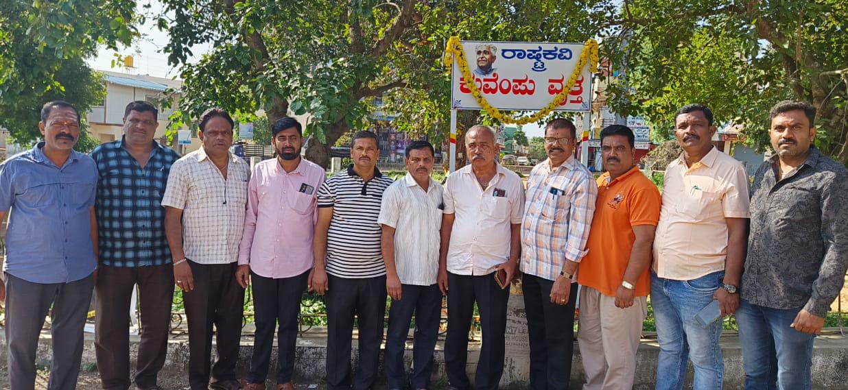 ರಾಷ್ಟ್ರಕವಿ ಕುವೆಂಪು ವೃತ್ತದಲ್ಲಿ ಕುವೆಂಪು ಅವರ ಭಾವಚಿತ್ರಕ್ಕೆ ಪುಷ್ಪ ನಮನ ಸಲ್ಲಿಸಿ ಪೂಜೆ ಮಾಡಲಾಯಿತು.