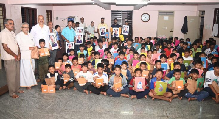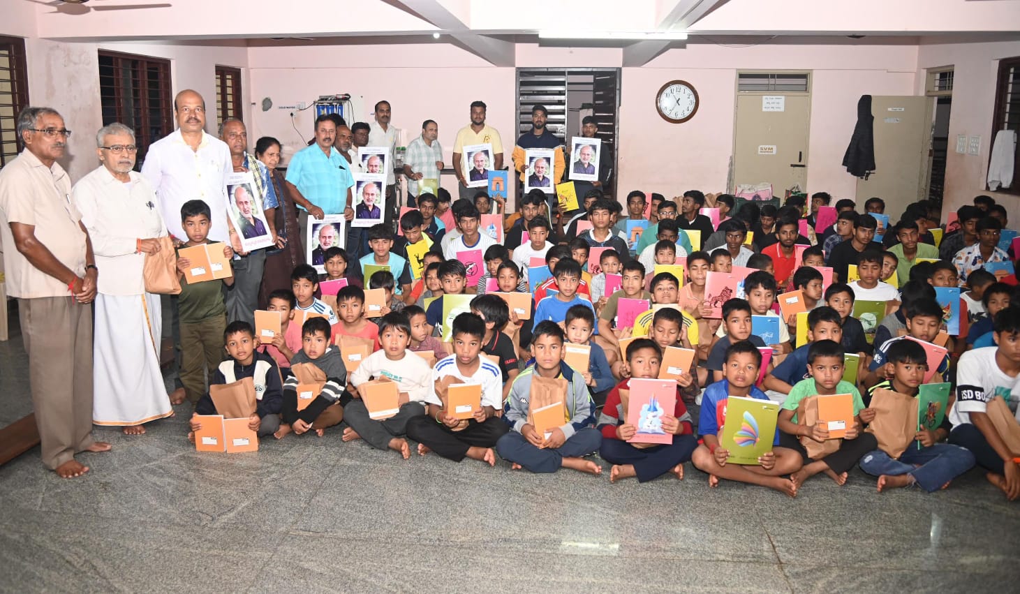 ವಿದ್ಯಾರ್ಥಿಗಳಿಗೆ ನೋಟ್ ಬುಕ್, ಹಣ್ಣು ಹಂಪಲು ಹಿರಿಯ ಸಮಾಜ ಸೇವಕ ರಘುರಾಮ ವಾಜಪೇಯಿ ಅವರು ವಿತರಿಸಿದರು.