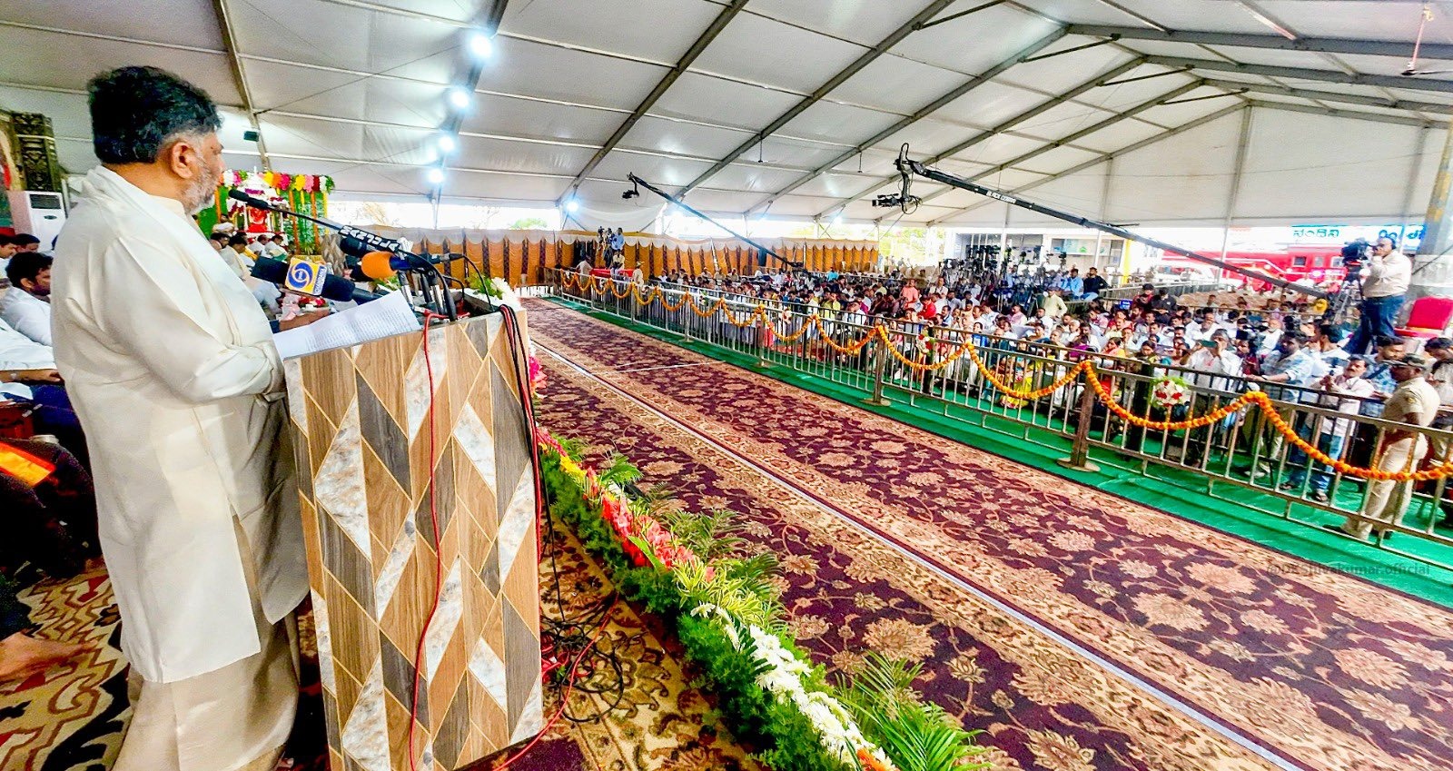 ಚಾಮುಂಡಿ ಬೆಟ್ಟದಲ್ಲಿ ದಸರಾ ಮಹೋತ್ಸವಕ್ಕೆ ಚಾಲನೆ ವೇಳೆ ಮಾತನಾಡಿದ ಡಿಕೆಶಿ,ಸಂಸಾರವನ್ನು ಕಾಪಾಡುವವಳು ಹೆಣ್ಣು,ಈ ರಾಜ್ಯವನ್ನು ಕಾಪಾಡುತ್ತಿರುವುದು ಹೆಣ್ಣು ದೇವತೆಗಳು, ಸ್ತ್ರೀ ಶಕ್ತಿಯೇ ನಮ್ಮ ಕರ್ನಾಟಕದ ಶಕ್ತಿ ಎಂದು ಬಣ್ಣಿಸಿದರು.