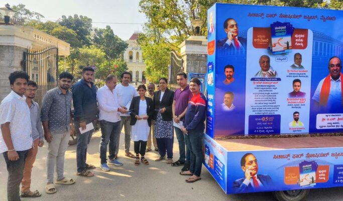 ಸಂವಿಧಾನ ಬದಲಾಯಿಸಿದ್ದು ಯಾರು ಪುಸ್ತಕ ಕುರಿತು ವಿಚಾರ ಗೋಷ್ಠಿ: ಪ್ರಚಾರ ವಾಹನಕ್ಕೆ ಚಾಲನೆ