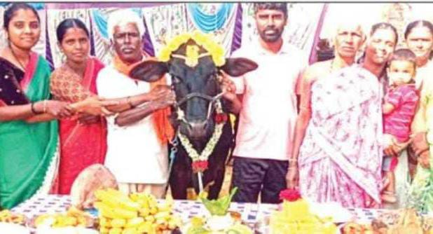 ರೇಣುಕಾ ಅವರು ತಮ್ಮ ಚೊಚ್ಚಲು ತುಂಬಿದ ಗರ್ಭಿಣಿ ಹಸುವಿನ ಸೀಮಂತವನ್ನು ಶಾಸ್ತ್ರೋಕ್ತವಾಗಿ ಮಾಡುವ ಮೂಲಕ ಎಲ್ಲರ ಮೆಚ್ಚುಗೆಗೆ ಪಾತ್ರವಾಗಿದೆ.