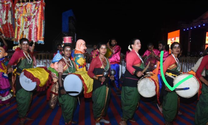 ಇದೇ ವೇಳೆ ಜಾನಪದ ಕಲಾತಂಡ ಮತ್ತು ಮಹಿಳೆಯರ ಡೊಳ್ಳು ಕುಣಿತ ಕೂಡಾ ಜನಮನ ಸೂರೆಗೊಂಡಿತು.