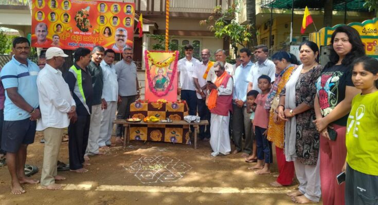 ತಾಯಿ ಭುವನೇಶ್ವರಿ ಭಾವಚಿತ್ರ ಇಟ್ಟು ವಿಶೇಷ ಪೂಜೆ ಸಲ್ಲಿಸಲಾಯಿತು.