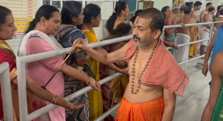 ಮೈಸೂರು: ಮೈಸೂರಿನ ಸರಸ್ವತಿಪುರಂ ನಲ್ಲಿರುವ ಶ್ರೀ ಕೃಷ್ಣ ದಾಮದಲ್ಲಿ ಶ್ರೀ ಕೃಷ್ಣ ಮಿತ್ರ ಮಂಡಳಿ ಮತ್ತು ಶ್ರೀ ಕೃಷ್ಣ ಟ್ರಸ್ಟ್ ವತಿಯಿಂದ ಪ್ರಥಮ ಏಕಾದಶಿ ದಿನದಂದು ಭಕ್ತರಿಗೆ ತಪ್ತ ಮುದ್ರಧಾರಣೆ ಮಾಡಲಾಯಿತು.