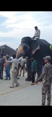 ಶ್ರೀರಂಗಪಟ್ಟಣ: ಶ್ರೀರಂಗಪಟ್ಟಣದಲ್ಲಿ ನಡೆಯಲಿರುವ ದಸರಾ ಉತ್ಸವದಲ್ಲಿ ಪಾಲ್ಗೊಳ್ಳಲು ಆಗಮಿಸಿದ ಗಜರಾಜನನ್ನು
