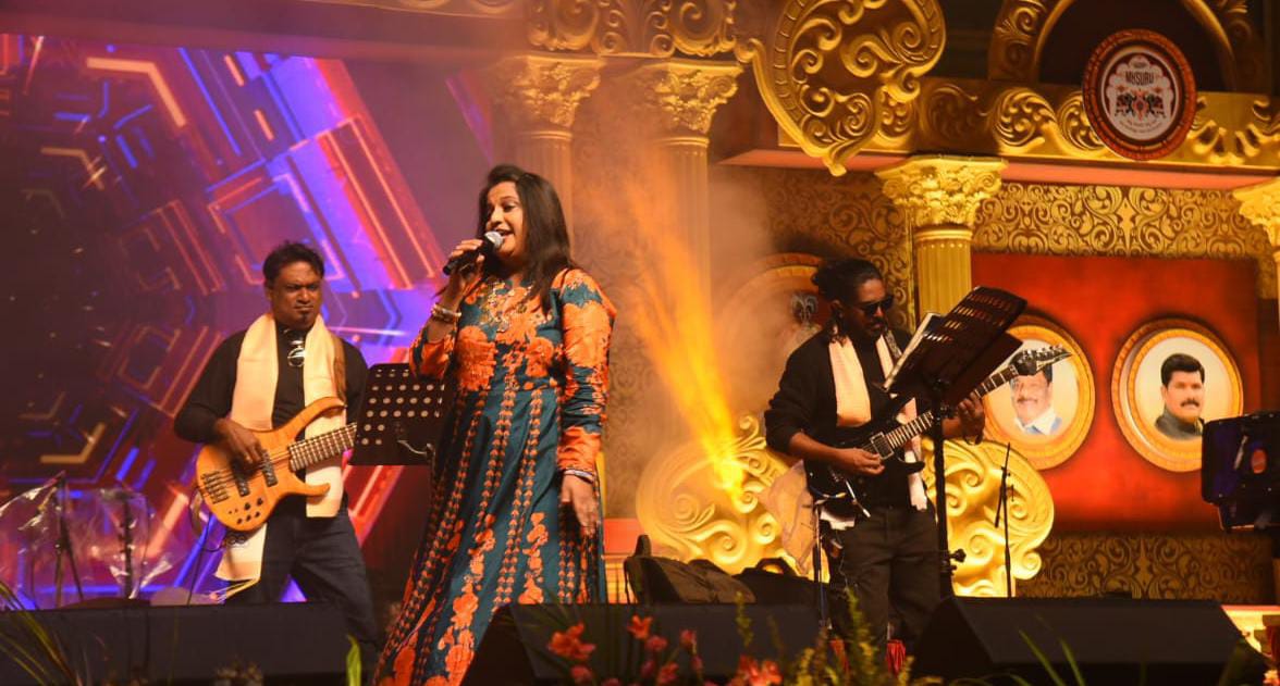 ಮೈಸೂರು: ತಂಪಾದ ಇಳಿ ಸಂಜೆಯಲ್ಲಿ ಅರಮನೆ ಆವರಣದಲ್ಲಿ ನೆರೆದ್ದಿದ್ದ ಪ್ರೇಕ್ಷಕರು ಹಾಗೂ ಪ್ರವಾಸಿಗರನ್ನು ತಮ್ಮ ಸುಮಧುರ ಗಾನಸುಧೆಯ ಮೂಲಕ ಗಾಯಕಿ ಸಿಂಚನ ದಿಕ್ಷಿತ್ ಅವರು ರಂಜಿಸಿದರು.