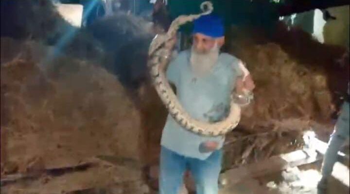 ಮೈಸೂರು: ಹುಲ್ಲಿನ ಮೆದೆಯೊಳಗೆ ಅಡಗಿದ್ದ ಭಾರಿ ಗಾತ್ರದ ಹೆಬ್ಬಾವನ್ನ ಉರಗ ತಜ್ಞ ಸ್ನೇಕ್ ಶ್ಯಾಮ್ ರಕ್ಷಿಸಿದ್ದಾರೆ.
