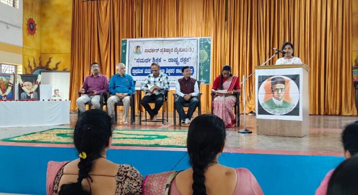 ಮೈಸೂರು: ಸಾವರ್ಕರ್ ಪ್ರತಿಷ್ಠಾನ ಮೈಸೂರು ವತಿಯಿಂದ ಪ್ರಾಥಮಿಕ ಹಾಗೂ ಪ್ರೌಢ ಶಾಲಾ ಶಿಕ್ಷಕರ ರಾಜ್ಯ ಮಟ್ಟದ ಕಾರ್ಯಗಾರವನ್ನು ಮಹರ್ಷಿ ಪಬ್ಲಿಕ್ ಶಾಲೆಯಲ್ಲಿ ಆಯೋಜಿಸಲಾಗಿತ್ತು.