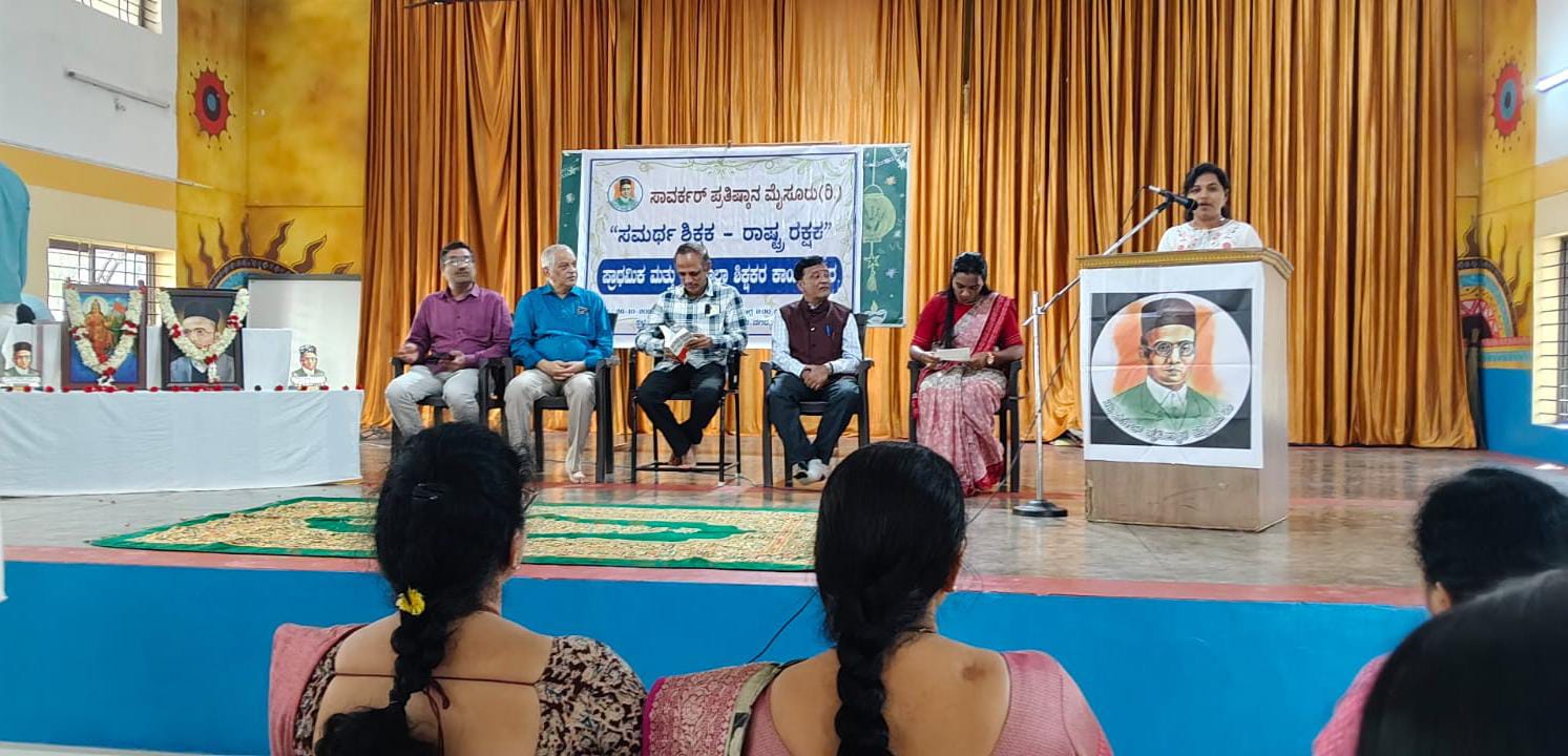 ಮೈಸೂರು: ಸಾವರ್ಕರ್ ಪ್ರತಿಷ್ಠಾನ ಮೈಸೂರು ವತಿಯಿಂದ ಪ್ರಾಥಮಿಕ ಹಾಗೂ ಪ್ರೌಢ ಶಾಲಾ ಶಿಕ್ಷಕರ ರಾಜ್ಯ ಮಟ್ಟದ ಕಾರ್ಯಗಾರವನ್ನು ಮಹರ್ಷಿ ಪಬ್ಲಿಕ್ ಶಾಲೆಯಲ್ಲಿ ಆಯೋಜಿಸಲಾಗಿತ್ತು.