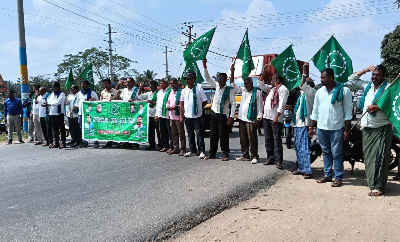 ಹುಣಸೂರಿನಲ್ಲಿ ಹೆದ್ದಾರಿ ತಡೆದು ನಂತರ ತಾಲೂಕು ಕಚೇರಿ ಮುಂಭಾಗ ಪ್ರತಿಭಟನೆ ನಡೆಸಿದರು. ಪ್ರತಿಭಟನೆಯು ಕರ್ನಾಟಕ ರೈತ ಸಂಘ ಪುಟ್ಟಣ್ಣಯ್ಯ ಬಡದ ಜಿಲ್ಲಾಧ್ಯಕ್ಷ ಹೊಸೂರು ಕುಮಾರ್ ನೇತೃತ್ವದಲ್ಲಿ ನಡೆಯಿತು.