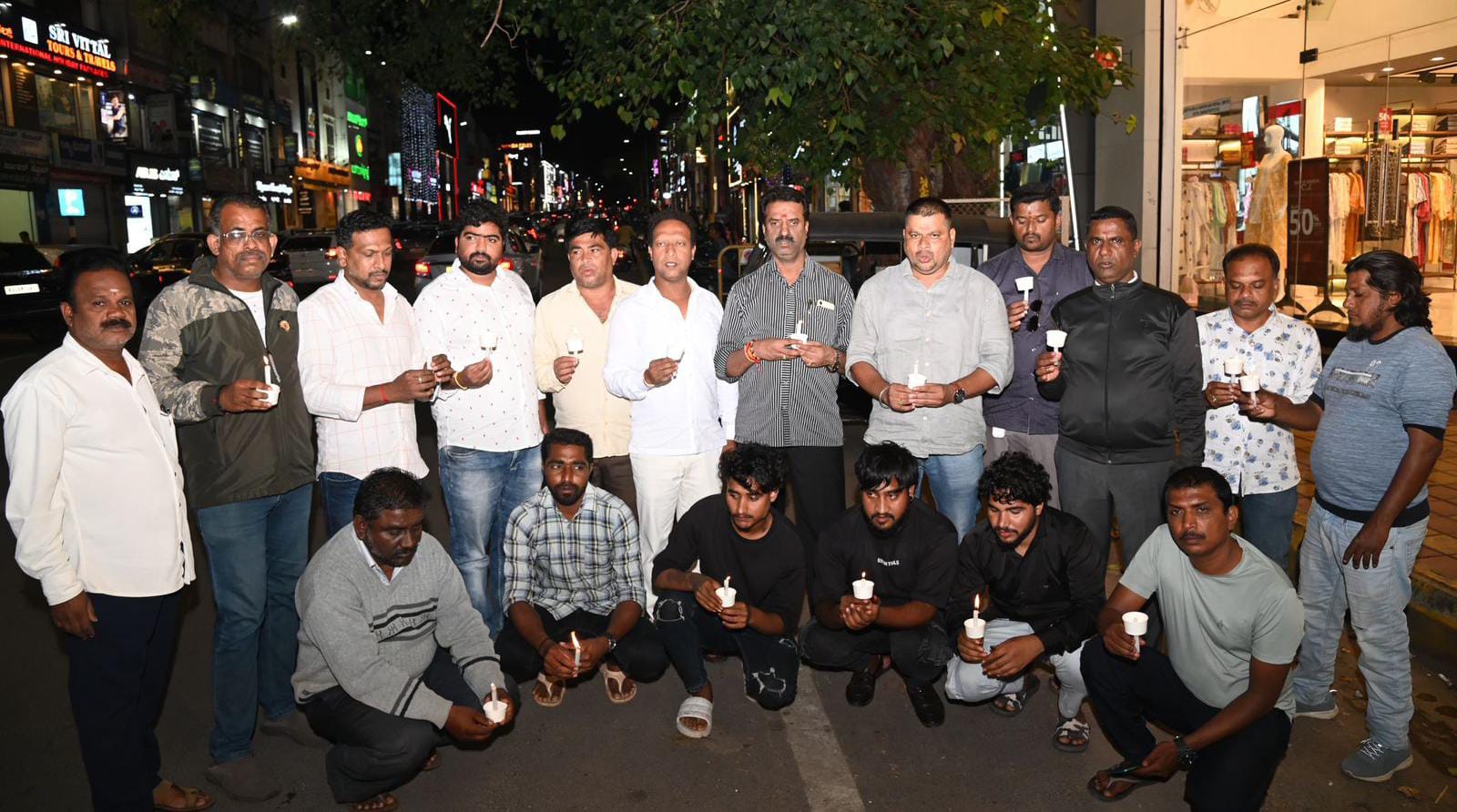 ಮೈಸೂರಿನ ಡಿ ದೇವರಾಜ ಅರಸು ರಸ್ತೆಯಲ್ಲಿ ಕರ್ನಾಟಕ ಹಿತರಕ್ಷಣ ವೇದಿಕೆ ವತಿಯಿಂದ ವಿಮಾನ ಪತನದಲ್ಲಿ ಮೃತಪಟ್ಟವರಿಗೆ ಮೇಣದ ಬತ್ತಿ ಹಚ್ಚಿ ಶ್ರದ್ಧಾಂಜಲಿ ಅರ್ಪಿಸಲಾಯಿತು.