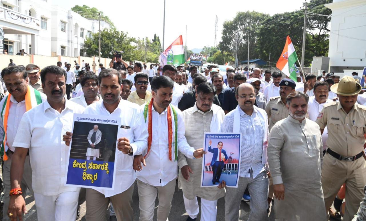 ಕೇಂದ್ರ ಸಚಿವ ಅಮಿತ್ ಶಾ ಬಿ.ಆರ್ ಅಂಬೇಡ್ಕರ್ ಅವರ ವಿರುದ್ಧ ಅವಹೇಳನಕಾರಿ ಹೇಳಿಕೆ ನೀಡಿರುವುದನ್ನು ಖಂಡಿಸಿ ಮೈಸೂರಿನಲ್ಲಿ ಕಾಂಗ್ರೆಸ್ ಕಾರ್ಯಕರ್ತರು ಬೃಹತ್ ಪ್ರತಿಭಟನೆ ನಡೆಸಿದರು.