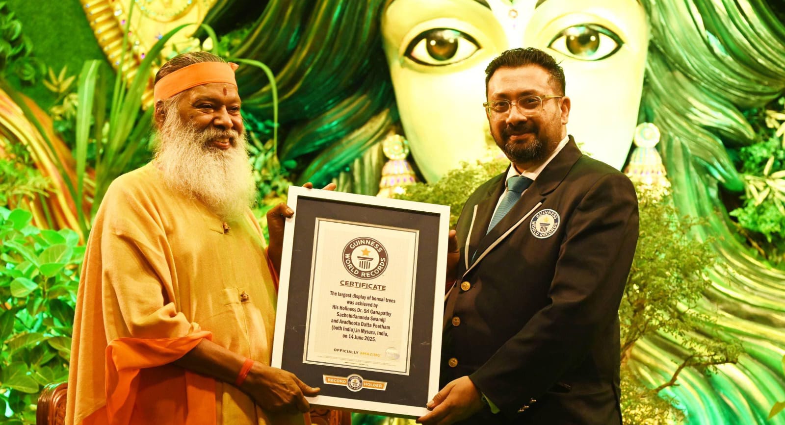ಗಿನ್ನಿಸ್ ಸಂಸ್ಥೆಯ ಪ್ರತಿನಿಧಿ ಋಷಿನಾಥ್ ಅವರು ಶ್ರೀ ಗಣಪತಿ ಸಚ್ಚಿದಾನಂದ ಸ್ವಾಮೀಜಿಯವರಿಗೆ ವಿಶ್ವದಾಖಲೆ ಪ್ರಮಾಣ ಪತ್ರವನ್ನು ಪ್ರದಾನ ಮಾಡಿದರು.