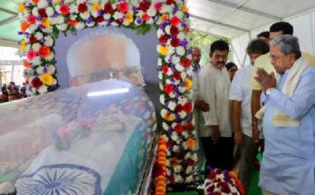 ಬೆಂಗಳೂರಿನ ರವೀಂದ್ರ ಕಲಾಕ್ಷೇತ್ರದಲ್ಲಿ ಪದ್ಮಭೂಷಣ ಹಿರಿಯ ಸಾಹಿತಿ ಎಸ್.ಎಲ್.ಬೈರಪ್ಪನವರ ಪಾರ್ಥಿವ ಶರೀರಕ್ಕೆ ಅಂತಿಮ ನಮನ ಸಲ್ಲಿಸಿದ ಸಿಎಂ ಸಿದ್ದರಾಮಯ್ಯ.