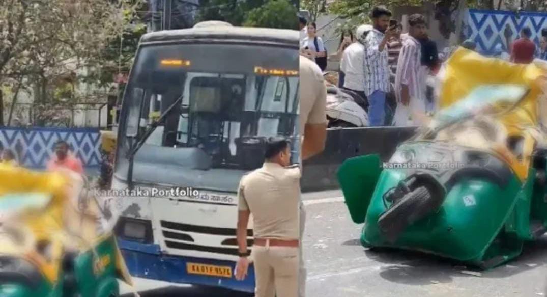 ಬಿಎಂಟಿಸಿ ಬಸ್ ಡಿಕ್ಕಿ ಆಟೋ ಅಪ್ಪಚ್ಚಿ:ಚಾಲಕ,ವೈದ್ಯ ಸಾವು