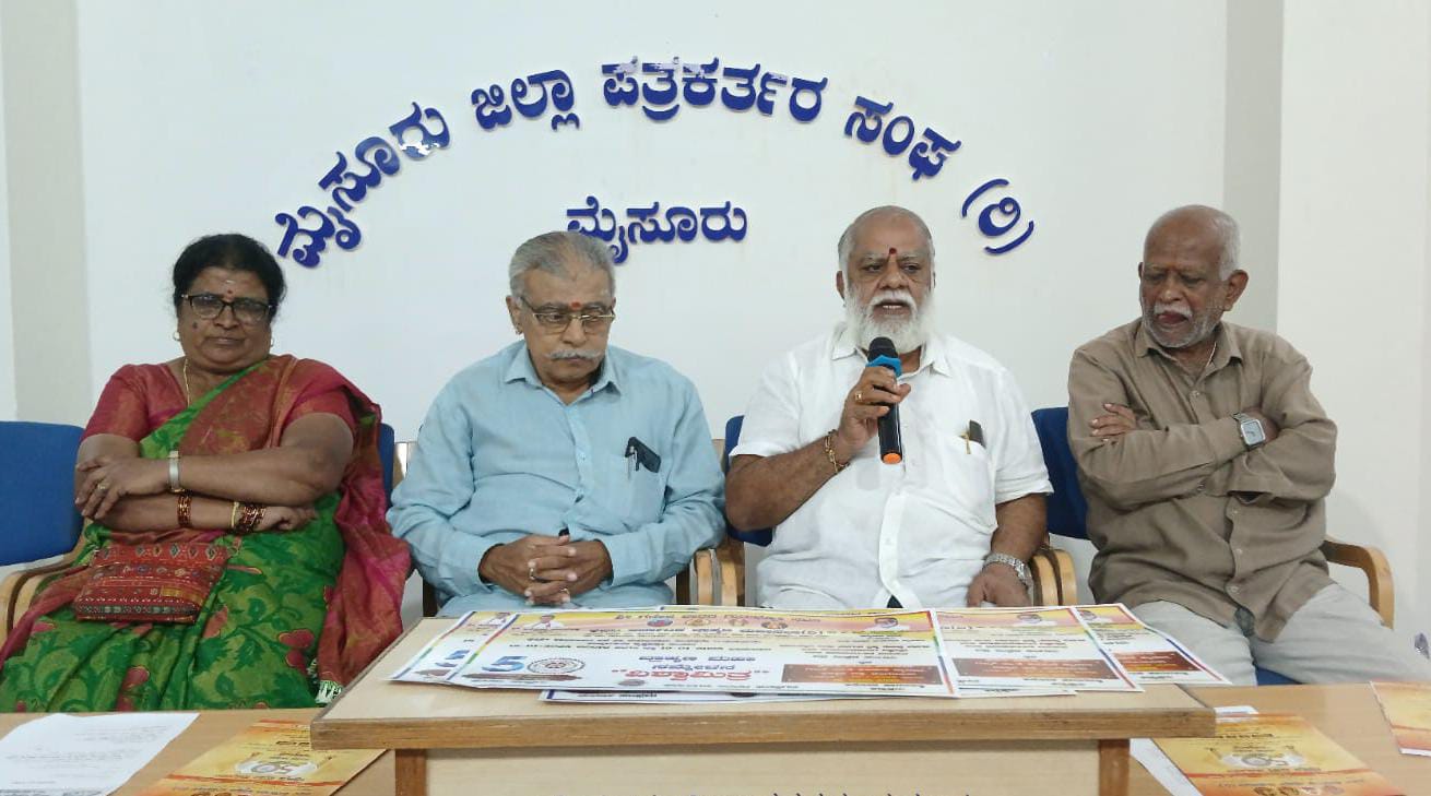 ಮೈಸೂರು ಜಿಲ್ಲಾ ಪತ್ರಕರ್ತರ ಭವನದಲ್ಲಿ ಇಂದು ಸುದ್ದಿಗೋಷ್ಠಿಯಲ್ಲಿ ಅಖಿಲ ಕರ್ನಾಟಕ ಬ್ರಾಹ್ಮಣ ಮಹಾಸಭಾ ಸಮ್ಮೇಳನ ಸಮಿತಿ ಉಪಾಧ್ಯಕ್ಷರೂ ಆದ ಬಿ. ಆರ್. ನಟರಾಜ್ ಜೋಯಿಸ್ ಮಾತನಾಡಿದರು.